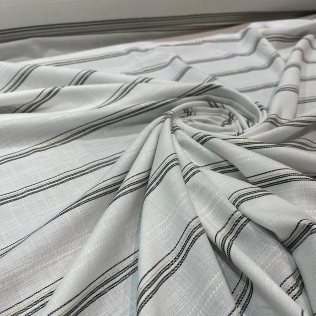 A Viscose Fio Tinto é um tecido 56% Viscose / 42% Algodão / 1% Poliamida / 1% Poliester, com caimento suave e toque macio. Seu processo de tingimento diretamente no fio garante cores vivas, uniformes e de excelente durabilidade, além de um visual levemente texturizado e elegante. Ideal para a criação de peças leves e versáteis como blusas, vestidos, saias amplas, camisas e pantalonas, a Burgos combina sofisticação e conforto, sendo perfeita para coleções de meia-estação e verão.